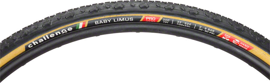 Challenge Baby Limus Pro Tire: Handmade Clincher, 700x33, 300tpi, Black/Tan