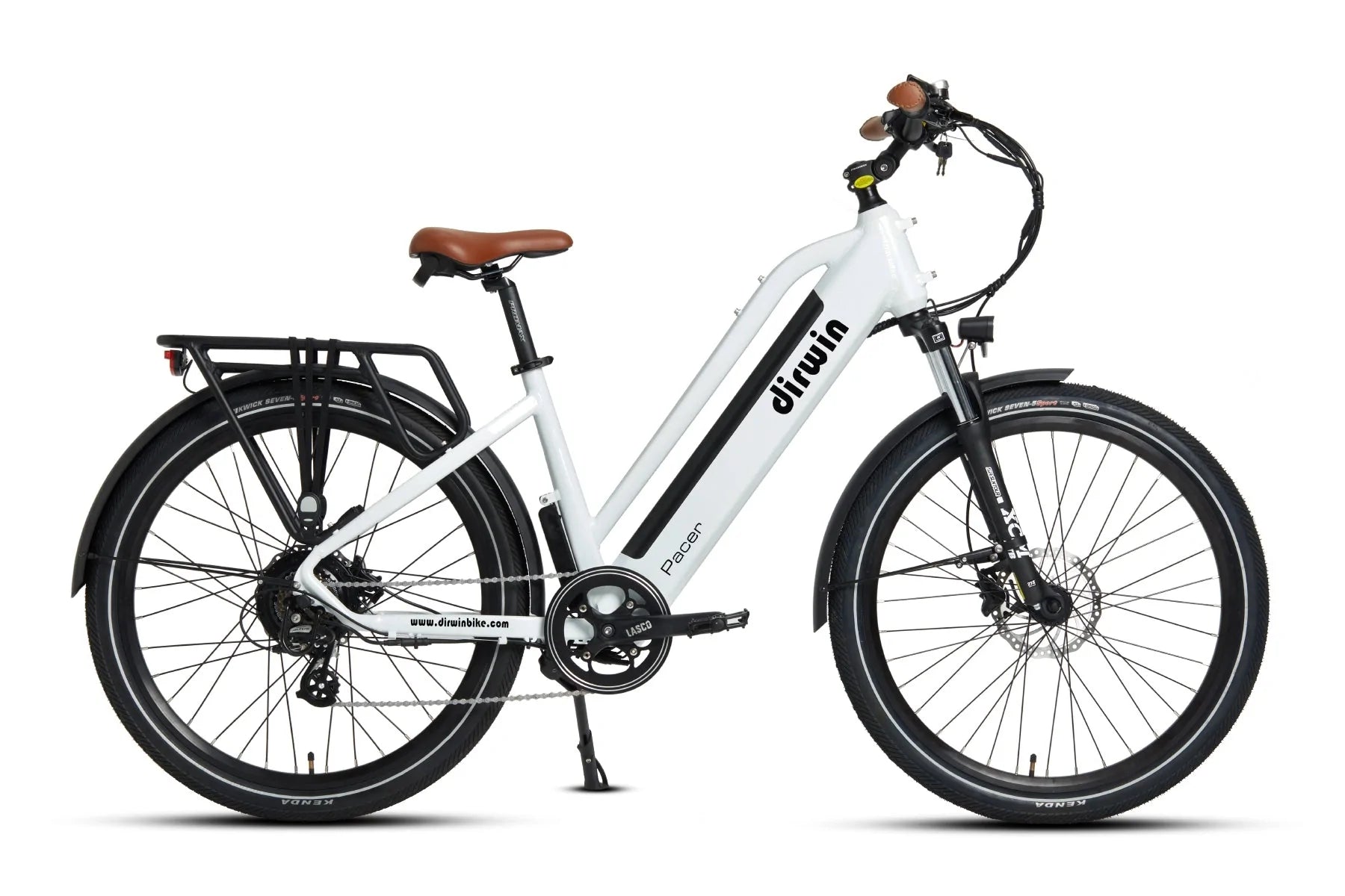 Powerful, efficient, and innovative, the Dirwin Pacer can do it all! It's a versatile 2.2 inch tire touring/all-road electric bike built for street riding, recreational riding, commuting, and even gravel and hard-packed dirt trails. With a fully integrated battery, lights, color LCD display, and a front suspension fork, the Pacer provides ultimate comfort and safety no matter what time of day or terrain you’re riding. It features a step-thru frame for easy mounting and dismounting, and the 500W/1000W peak power system offers both a flexible 5-level pedal assist and throttle mode.