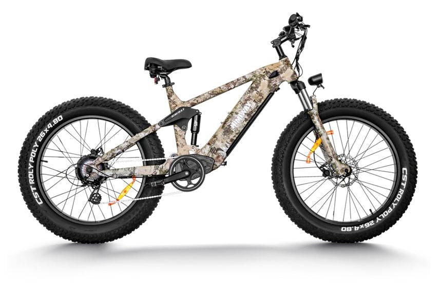 It is the first e-bike on the U.S. market with four-bar linkage suspension technology, complemented with 4.8” CST fat tires, these specialize in absorbing both rear-upward force and vibrations, which allows you to ride safely over rutted trails, deep snow, and soft sand without taxing the rider.